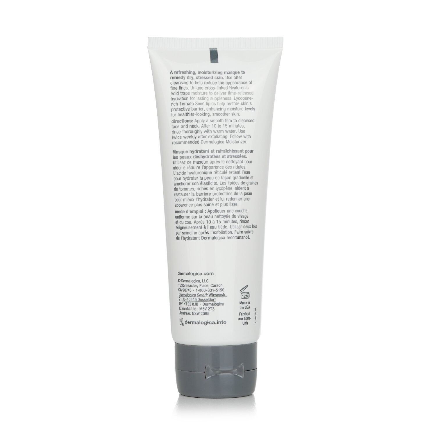 A refreshing, moisturizing masque to remedy dry, stressed skin. Use after cleansing to help reduce the appearance of fine lines. Unique cross-linked Hyaluronic Acid traps moisture to deliver time-released hydration for lasting suppleness. Lycopene-rich Tomato Seed lipids help restore skin’s protective barrier, enhancing moisture levels for healthier-looking, smoother skin.